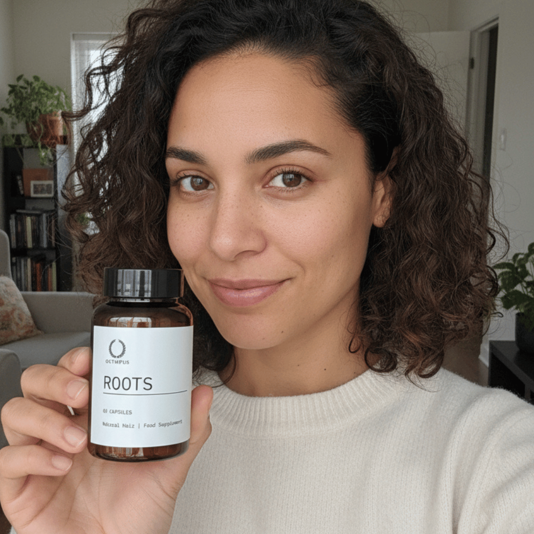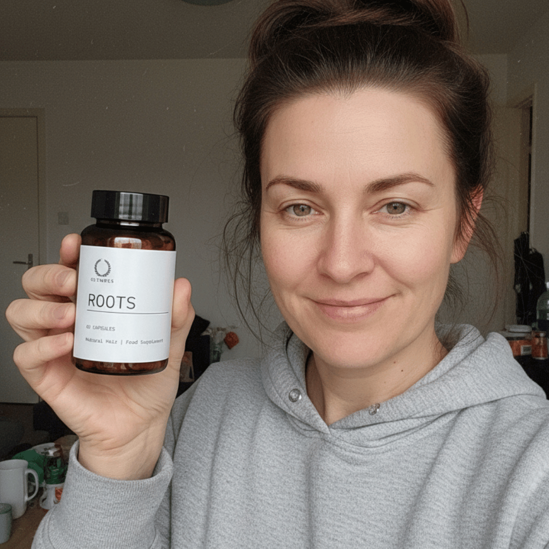 Roots is a daily 10-in-1 hair support supplement designed to nourish hair at the roots. It works from within to support growth, strength, thickness, and scalp health by addressing the key nutritional and internal factors linked to shedding, weakened hair.